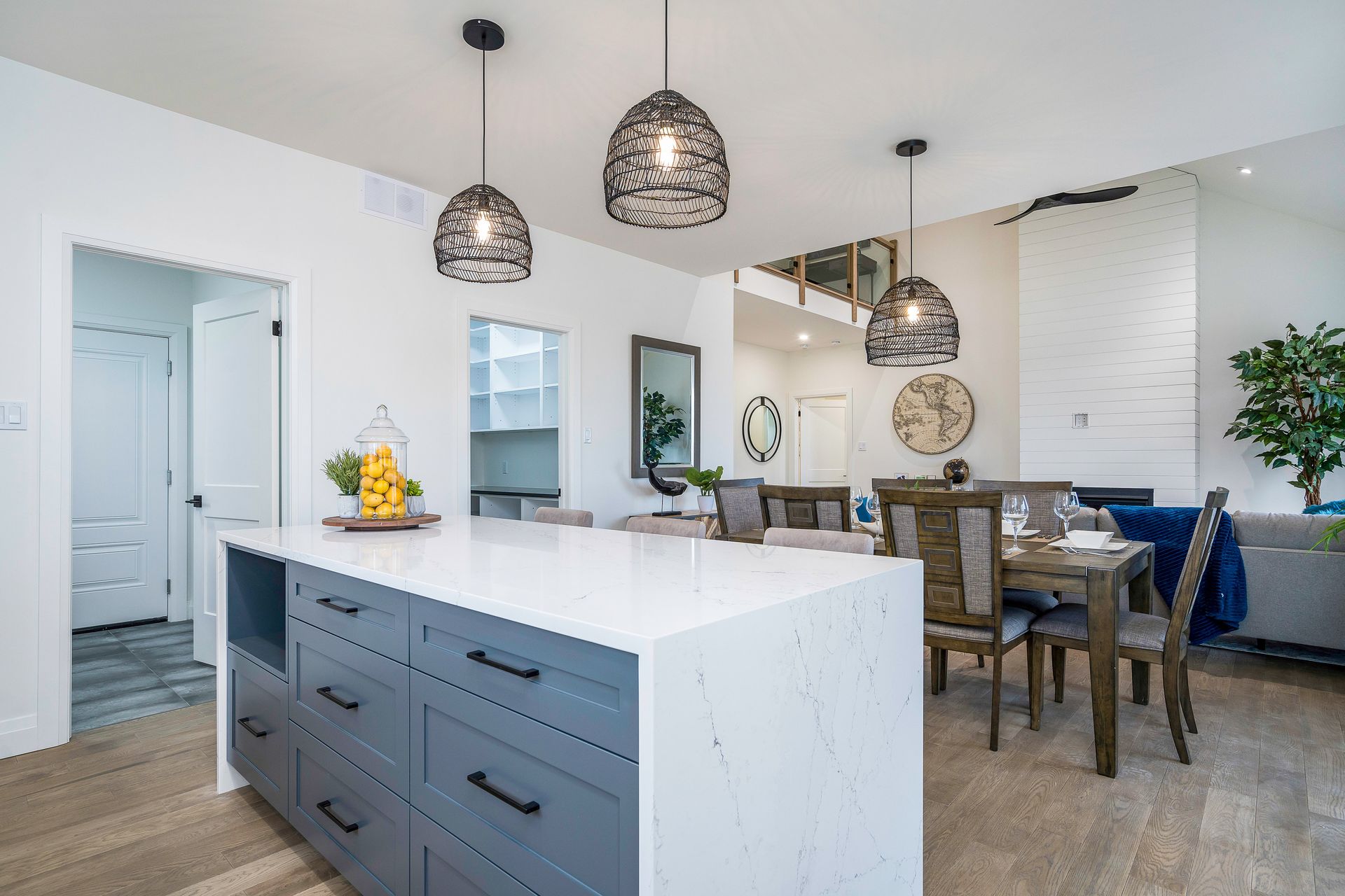 Relax and enjoy the peaceful environment of Cobble Beach. Each unit features front and rear covered porches, open concept living, dining and kitchen space, a main floor primary suite with ensuite and walk-in closet, laundry, solid surface counters, engineered hardwood flooring, oak stairs with glass railing, 9’ ceilings on the main floor with vaulted great room that also has a gas fireplace. The second level provides either one or two additional bedrooms a full bath and covered balcony. The unfinished basement is roughed-in for an additional bathroom. The double car garage has access from the interior. Included with each home purchase is a complimentary Cobble Beach Golf Membership initiation ($45,000 value).